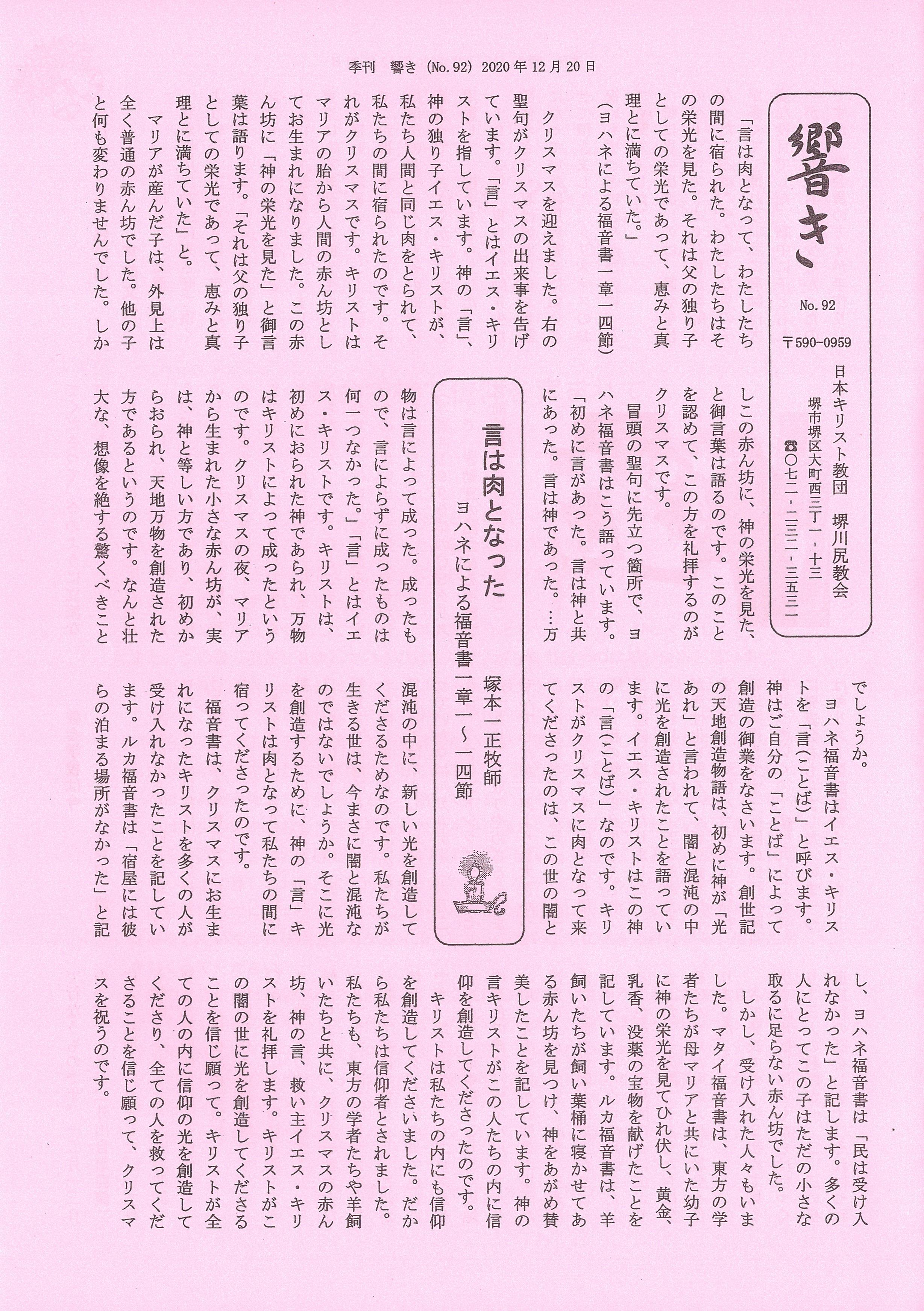 響き 巻頭説教 No.92 2020年12月20日発刊